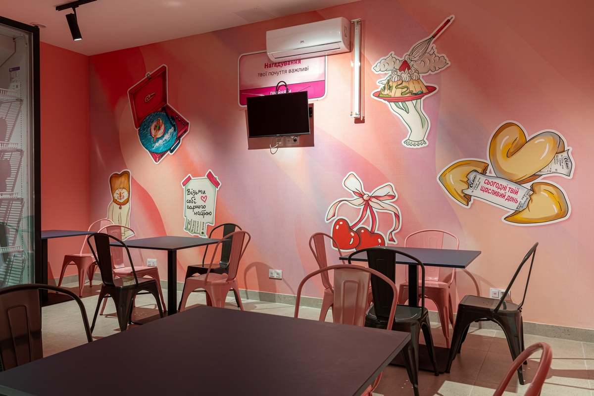 Как сообщили RAU в пресс-службе ритейлера, новый тематический магазин расположен по адресу: Киев, ул. Никольсько-Слободская, 11 А. Посетить его можно ежедневно с 8:00 до 23:00. На самом входе в супермаркет размещены гигантские очки, сквозь призму которых можно посмотреть на мир в розовом цвете. Интерьер магазина дополняют декор и иллюстрации о любви и заботе о себе. В частности, в магазине есть интерактивный борд с «Щастинками дня» — короткими фразами, которые мотивируют позаботиться о себе и близких: «Хорошо выспаться» или «Взять в офис вкусностей».