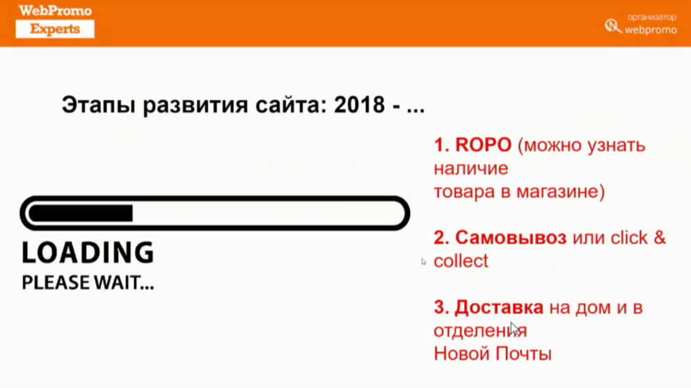 Общение с клиентом в цифровом мире проходит в трех плоскостях: соцсети, сайт и мобильное приложение. С июня 2018 года было три этапа, связанных с техническими особенностями реализации. Первый этап – возможность работы только промо (ROPO), когда клиент мог узнать о наличии товара, но купить продукты только в магазине. Второй этап – внедрение услуги click&collect, а третий – полноценная доставка.