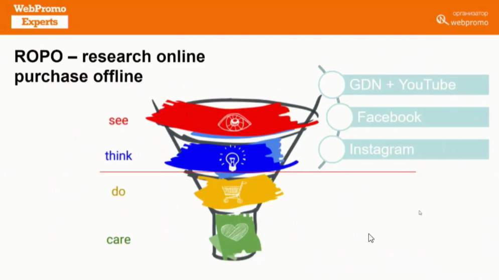 На этапе ROPO использовали баннерную рекламу Google Display Network (GDN) плюс YouTube, Facebook и Instagram. Когда на втором этапе добавили конверсионные кампании – пошла работа с поисковыми запросами и измерение количества заказов на сайте. Затем их сравнивали с тем, сколько товаров реально забрали в магазине.
