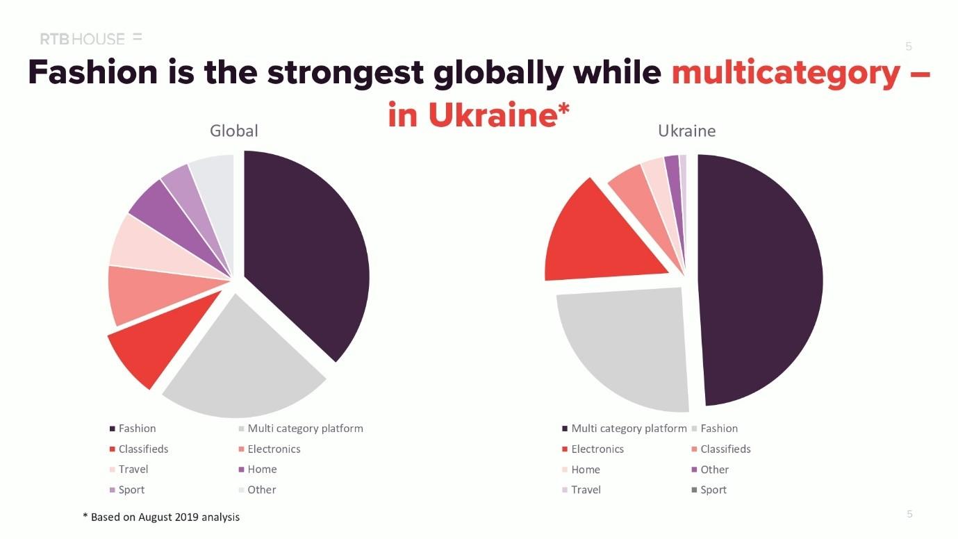 Вместе с тем была обнаружена интересная особенность: если на мировом рынке наибольшей популярностью с точки зрения ретаргетинга пользуется реклама в сфере fashion, то в Украине это мальтикатегорийна платформа. То есть, широкая, а не нишевая, сфера онлайн-продаж, потому что украинцы предпочитают покупать все необходимое в одном месте.