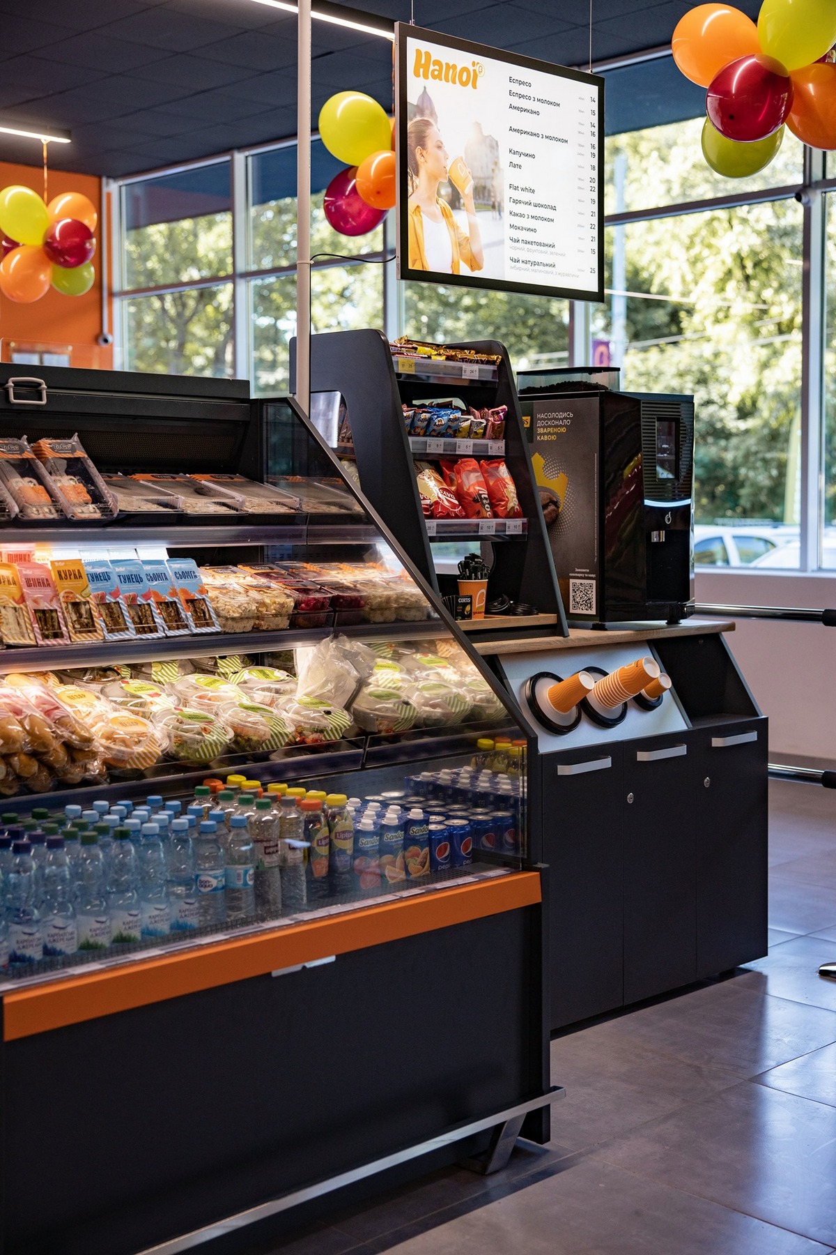 Поэтому независимо от площади торгового помещения, супермаркеты оборудованы так, чтобы покупателям было удобно делать закупки, а также они смогли полакомиться свежей выпечкой и фирменной пиццей.