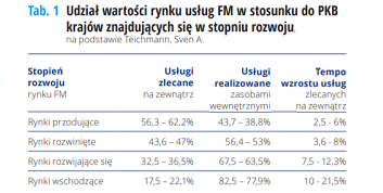 Началом для анализа стал 2008 год, в котором было сделано первое исследование рынка FM в европейском масштабе для 41-й страны. Данные о стоимости доли рынка услуг FM в отношении к ВВП развивающихся стран представлены в таб. 1.