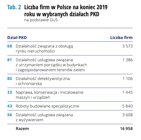 Обслуживание различных объектов – очень важная часть сектора услуг польской экономики. Однако, судя по отчету, рынку не хватает прозрачности и доступа к структурированным данным. Знания о сфере услуг FM ограничивается в основном поставщиками услуг, экспертами и наиболее образованными получателями этих услуг. Другие участники, в том числе подразделения государственного и статистического управления Польши, только начинают исследовать эту тему.