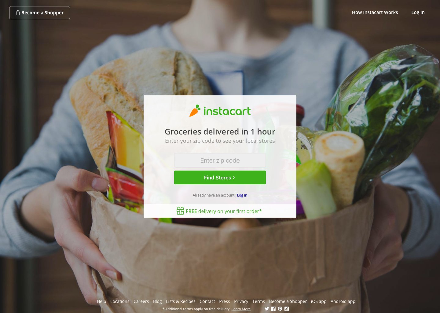 - У Instacart есть свой штаб постоянных курьеров, но основную часть курьерской службы составляют частные доставщики и независимые подрядчики. Сервис работает с курьерами-фрилансерами по принципу Uber через приложение Instacart. Потенциальный курьер регистрируется в приложении и отвечает на поступающие заказы, если находится поблизости с необходимым магазином.