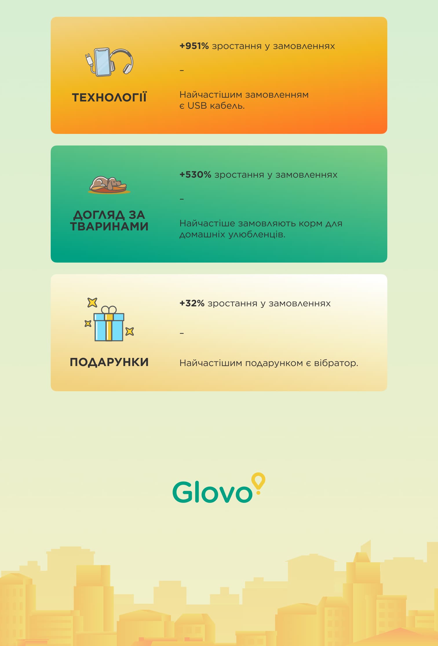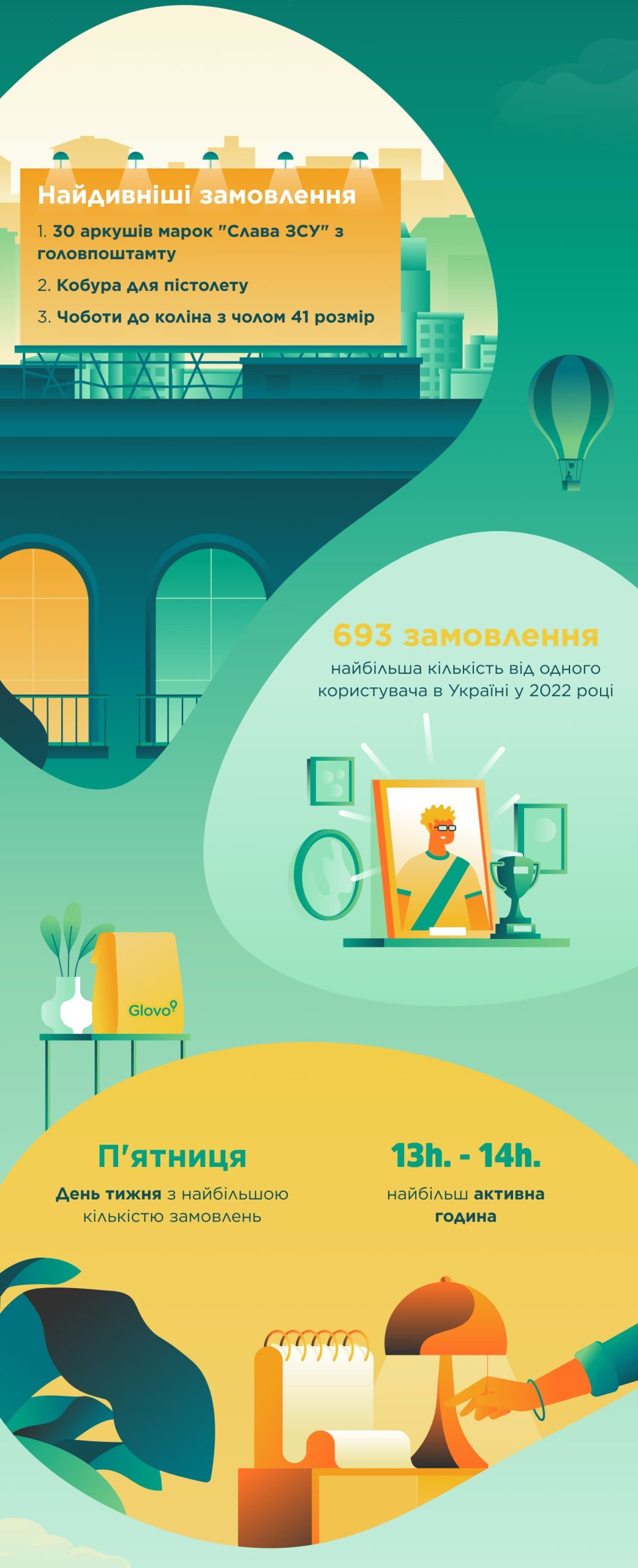 Марки, мексиканская еда и игрушки для взрослых: сервис Glovo рассказал, что украинцы заказывали в 2022 году (инфографика)