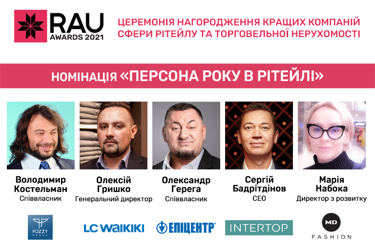 В ходе V ежегодного конкурса RAU Awards будут награждены лучшие компании сферы ритейла и лучшие ТРЦ. Отдельно буду награждены люди, которые больше всего сделали для развития сфер ритейла и девелопмента торговой недвижимости в 2020/21 годах. Short-list номинантов — 5 претендентов на премию «Персона года в ритейле», 5 — на премию «Персона года в девелопменте» и 5 — на премию «Персона года в e-commerce» — составлялся по итогам голосования Экспертного совета конкурса.