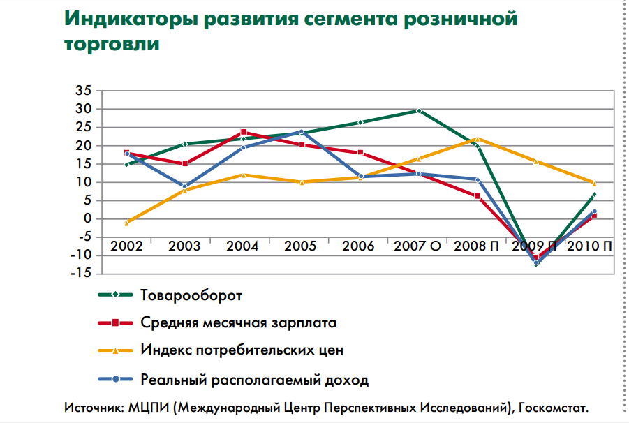 Но если этого не случится, то страна довольно быстро сможет восстановить рост экономики по V-образной кривой, как это было, например в 2010 году, когда розничный товарооборот вырос на 7,6%.