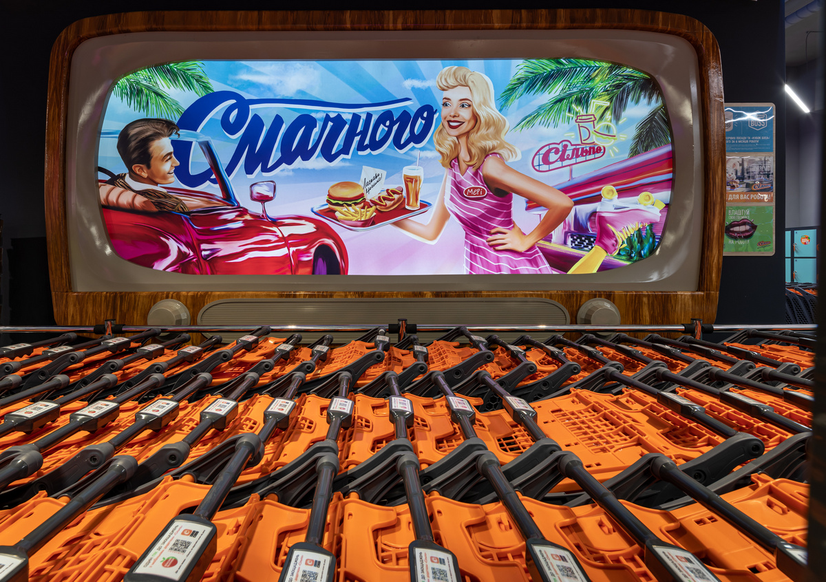 Еще одна яркая инста-зона: 5 ретробензоколонок, размещенных у касс. Их здесь для удобства установлено немало: 8 классических, одна для выдачи интернет-заказов, 2 экспресс-кассы, 7 самокас и отдельные кассы в фуд-холле, цветочной мастерской, а также в отделе чая и кофе. Итак, ежедневно с 8:00 до 23:00 let’s rock вместе с Сельпо.
