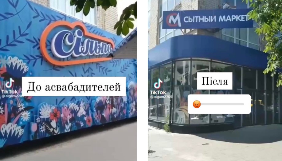 Судя по представленным фото и видеоматериалам, оккупанты сменили только вывеску, оставив внутри отжатого супермаркета даже украиноязычную навигацию ритейлера.