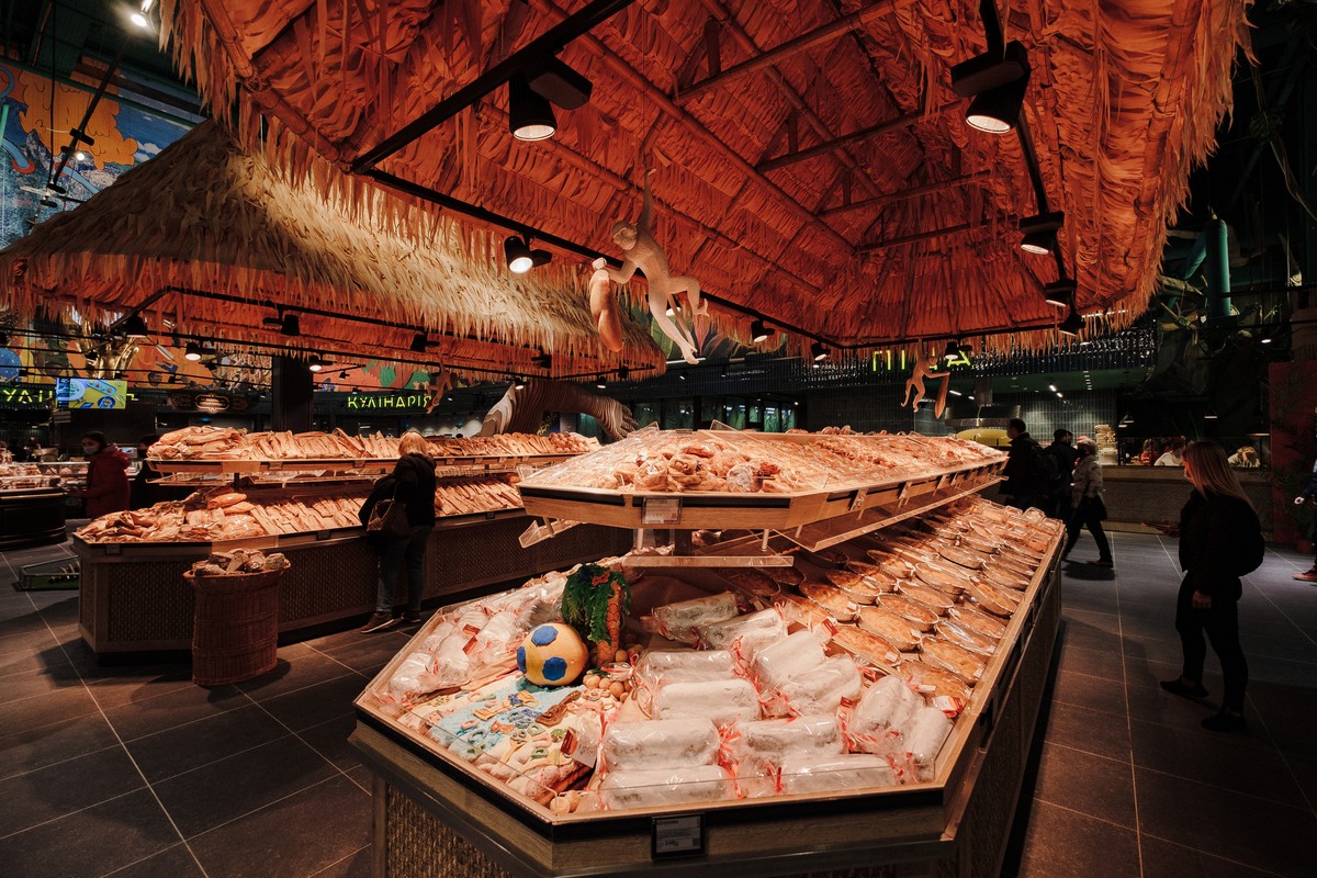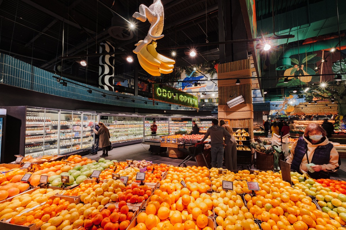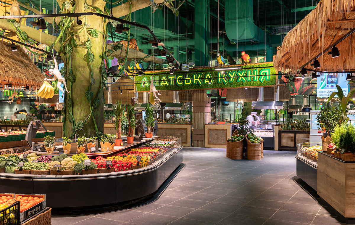 Начинается собственно “путешествие за продуктами” в джунглях Амазонии из отдела фруктов и овощей, где кроме экзотики, посетители найдут продукты от украинских фермеров.