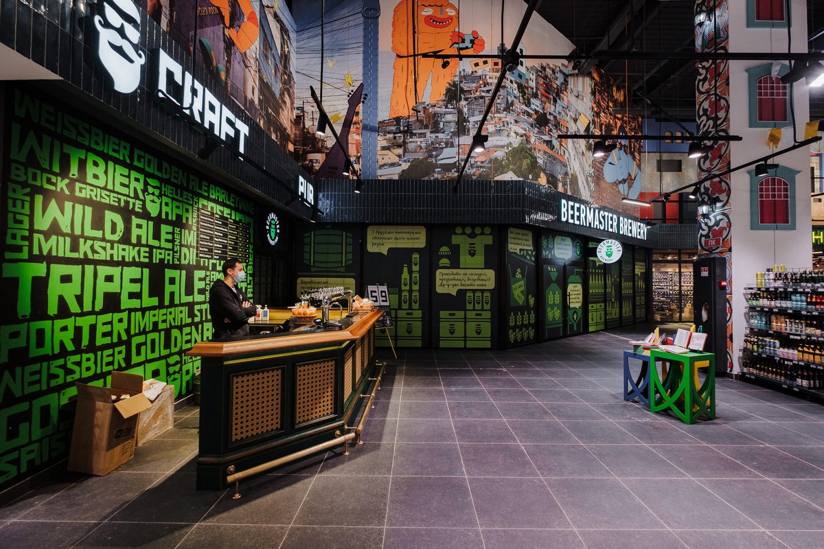 В новом супермаркете Сільпо впервые реализовал несколько уникальных проектов. Первый – это комната для медитации, второй – собственный паб Beermaster. Дизайн паба сделан по мотивам национальной библиотеки Бразилии. В нем соединены неоклассицизм и модерн.
