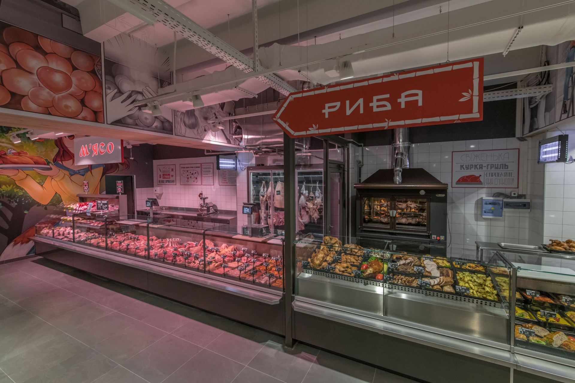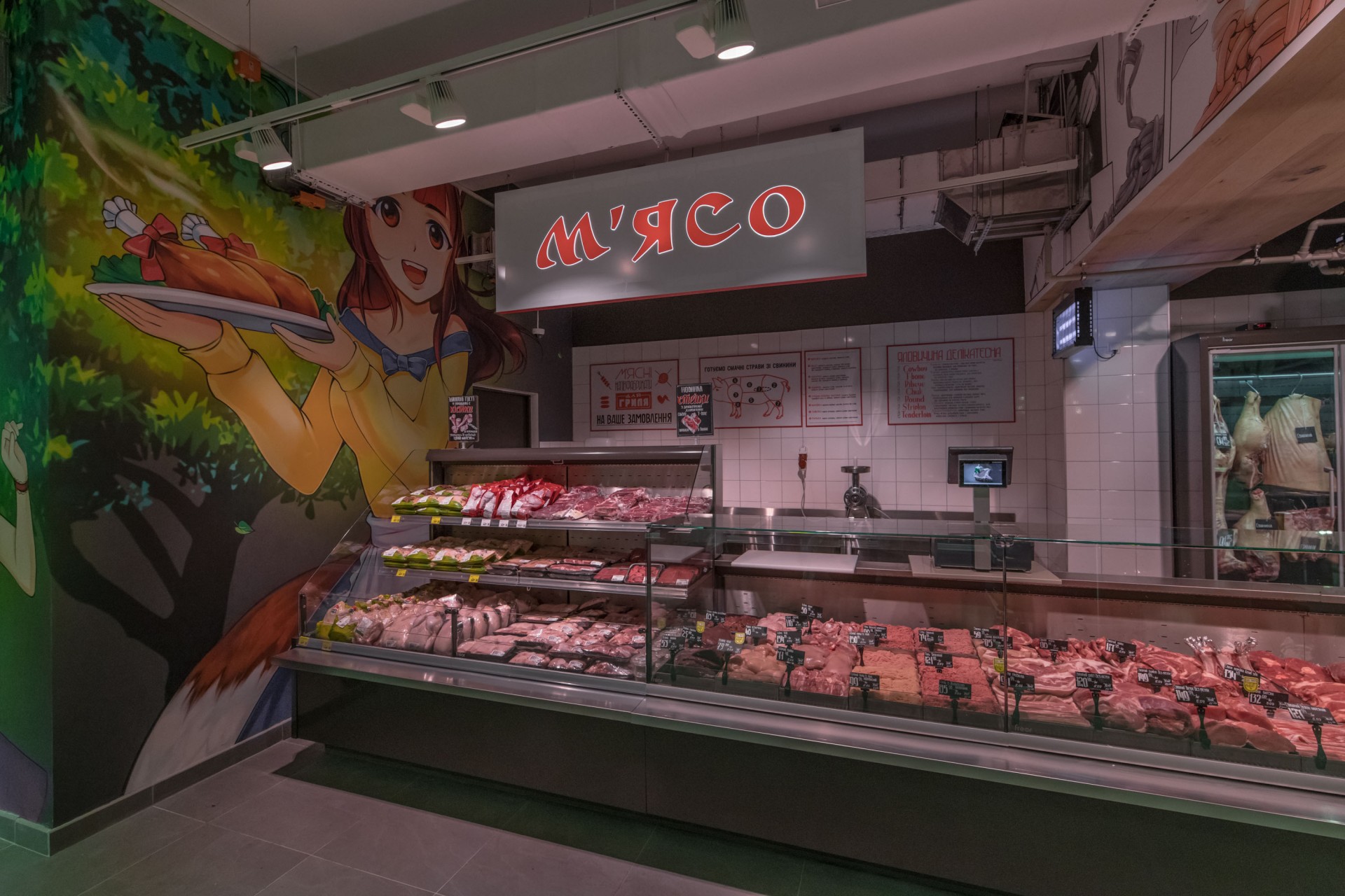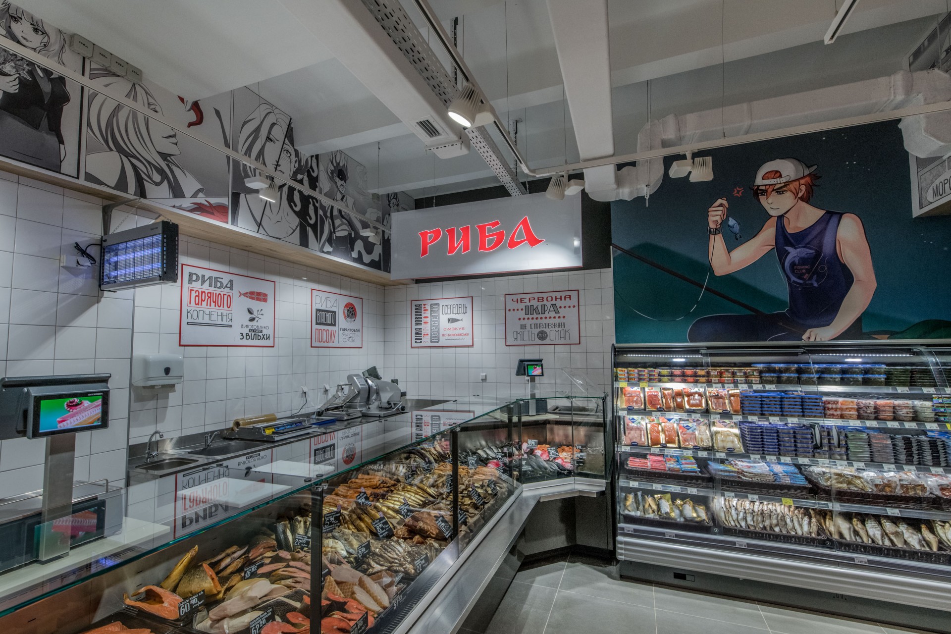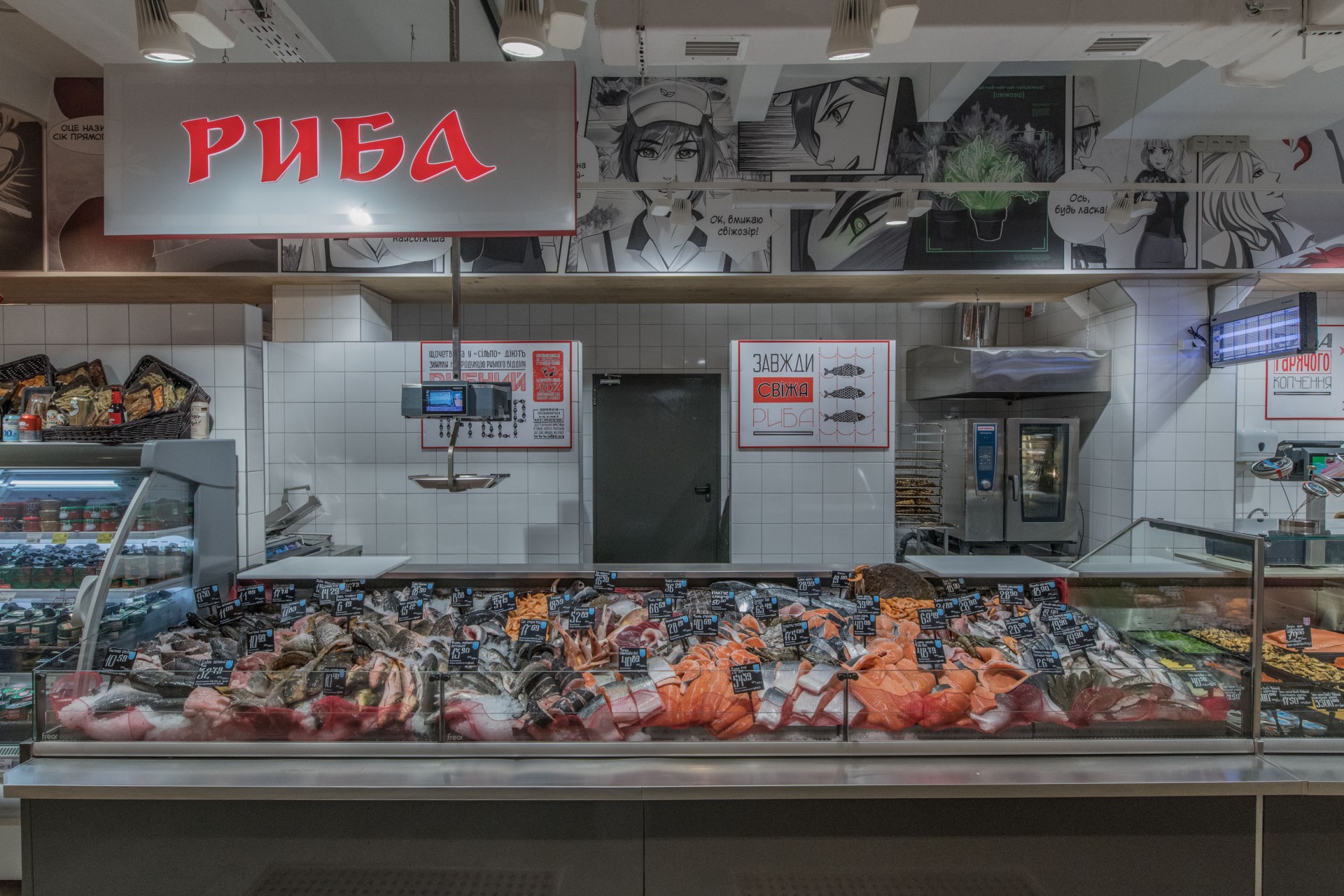 Ассортимент торговой точки, работающей ежедневно с 8:00 до 22:00, насчитывает более 15 000 единиц товара. В магазине традиционно представлена рыба собственного копчения, большой выбор мяса, колбасы и хамона, а также овощной отдел, экзотические фрукты, собственная пекарня, островок «Лавка традиций» с продуктами от украинских фермеров и кулинария.