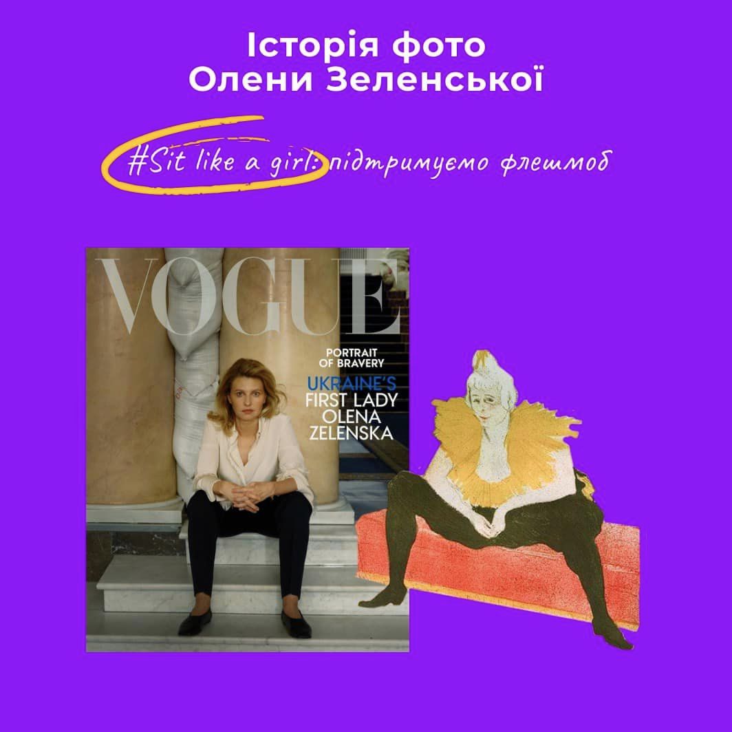 “Есть версия, что референсом к этому фото стала картина Тулуз-Лотрека «Сидящая Ша-У-Као». Художник увлекался свободолюбивой моделью, которая имела смелость выбрать мужскую профессию клоуна, и в целом была очень открытой и искренней. На фото Елена Зеленская позволяет себе быть уставшей, не заботясь ни о хорошей пози, ни о выгодном повороте головы. И мы считаем, что это действительно восхищает”, – рассказали в Prom.ua.