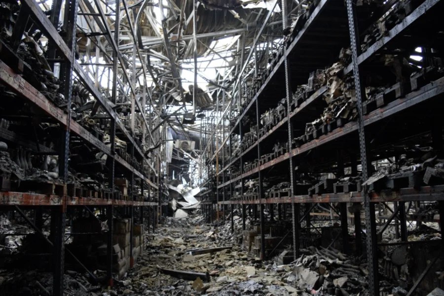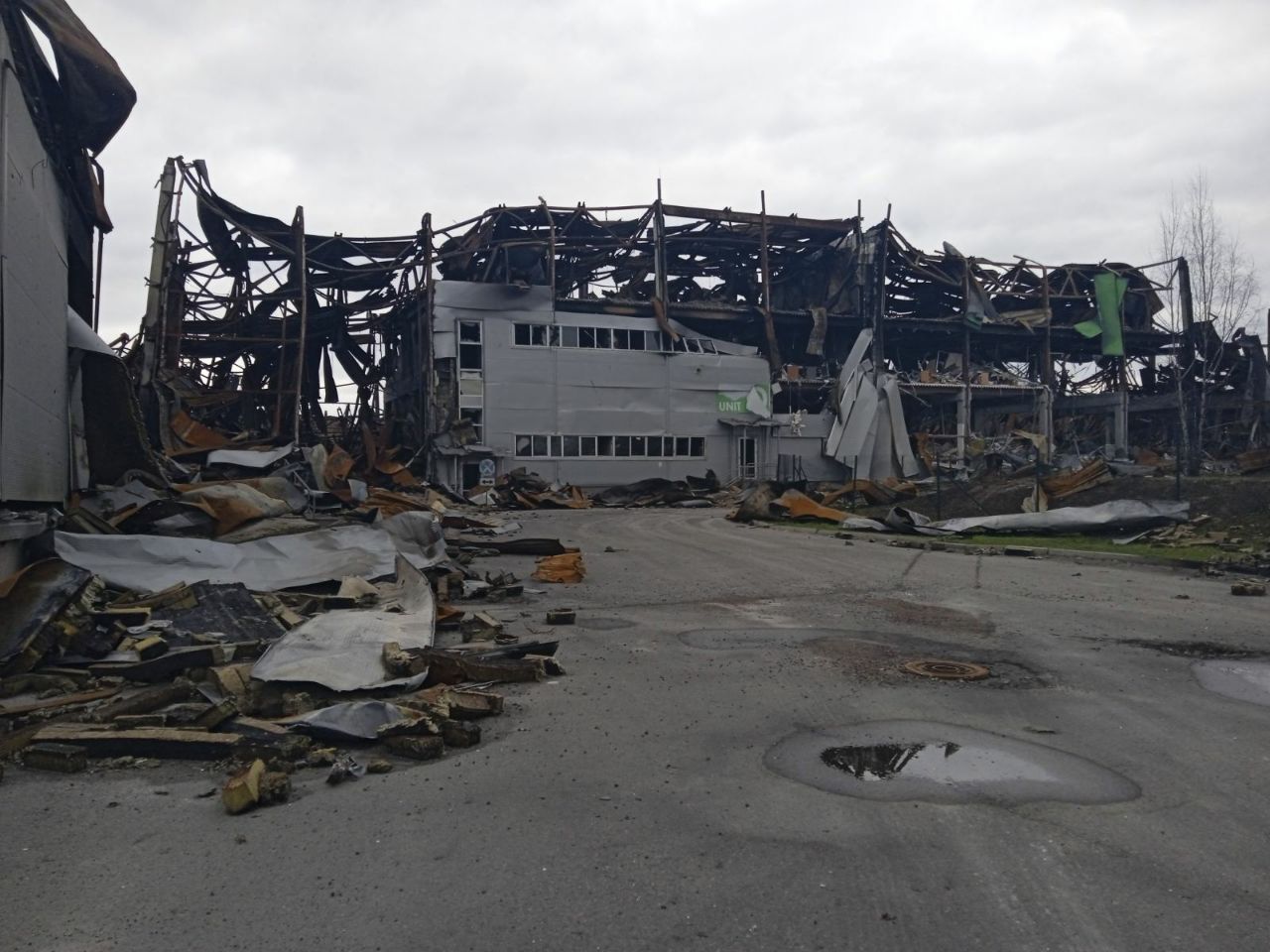 Больше всего в результате военных действий пострадали складские объекты, которые располагались вдоль автомобильной трассы М-06 (Житомирское направление), где значительное разрушение потерпели с. Стоянка, с. Петрушки, с. Бузовая и пгт Макаров. Значительные разрушения понесли также складские и логистические комплексы, которые располагались вдоль Варшавской трассы (М-07) возле городов Буча, Гостомель и поселка Ворзель в Бучанском районе.
