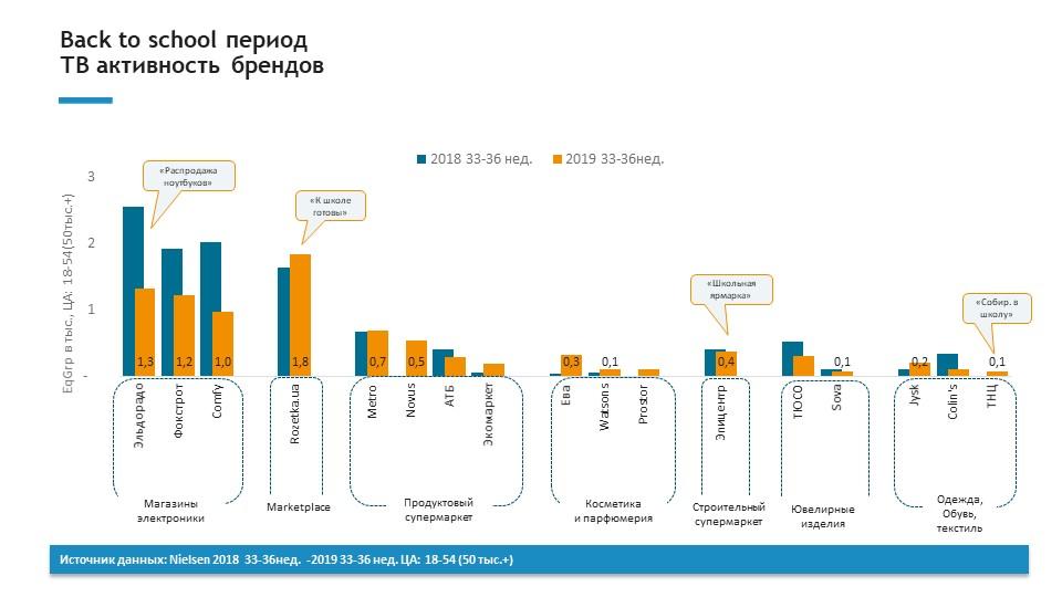 График 3. Активность ритейлеров по брендам в back-to-school периоды 2018-2019 годов.