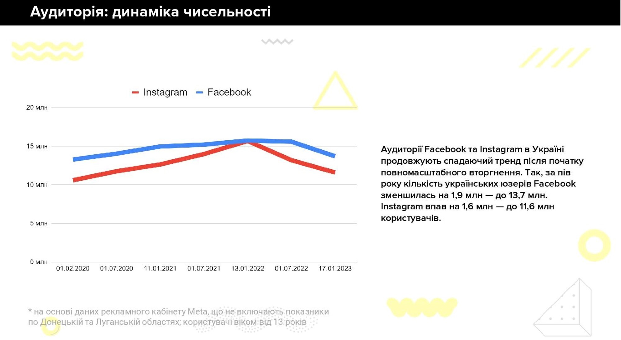 Однако в украинских реалиях за последние полтора года ситуация изменилась по крайней мере дважды. Первый раз, когда в начале 2022 года Instagram догнал по количеству пользователей Facebook, второй раз – когда после полномасштабного российского вторжения начался отток пользователей из страны. Согласно исследованию Plusone Social Impact, за год украинский Facebook потерял 2 млн пользователей – его аудитория насчитывает 13,7 млн пользователей. Годовое падение Instagram составило 4,1 млн человек, и теперь его аудитория составляет 11,6 млн, что, безусловно, повлияло и на показатели социальной коммерции. Однако Instagram продолжает сокращать дистанцию с Facebook по активности потребителей.