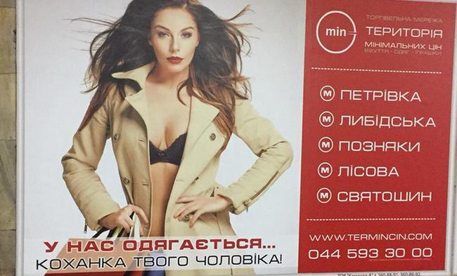 Киевское метро часто усеяно рекламой с объективизацией женщин. В Територии минимальных цен явно ориентируется лишь на аудиторию, допускающую подобные выпады. Зато потом на 8 марта все мчат за тюльпанами и делают вид, что все именно так и надо.