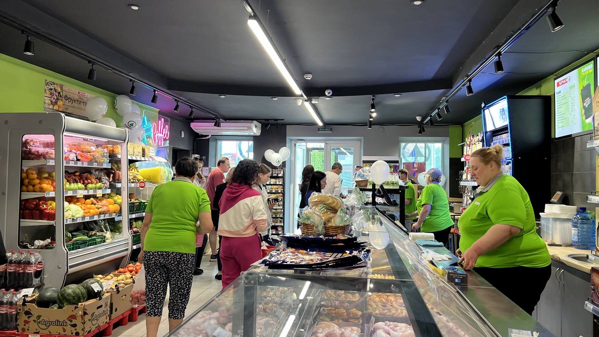 В магазине представлено все, что нужно для вкусного стола и не только: аппетитная выпечка, ароматная пицца, которая жарится прямо на месте, фаст-фуд, кулинария и свежее мясо.