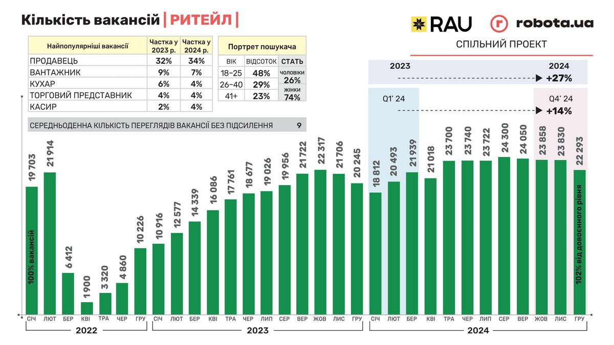 Спецпроект RAU и robota.ua: как изменился рынок труда в ритейле с января по декабрь 2024 года