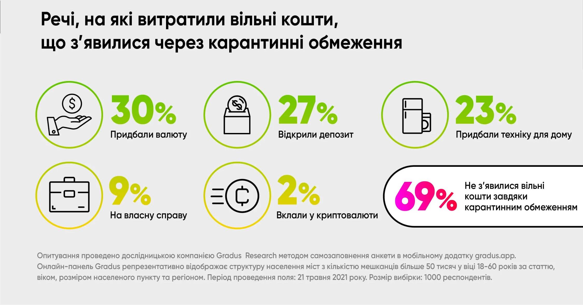 Украинская исследовательская компания Gradus Research спросила респондентов о том, на что они тратят деньги, сэкономленные во время пандемии, и как изменились у них приоритеты в покупках.