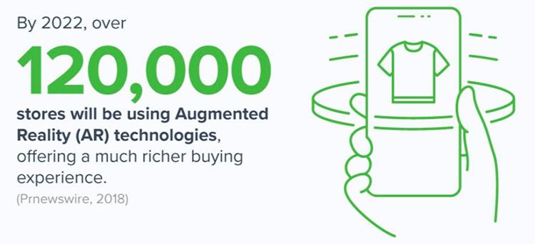 Одна из главных причин, по которым люди ходят за покупками в традиционные магазины: невозможность увидеть и примерить продукт. Технология AR позволяет решить эту проблему. К 2022 году только в США число онлайн-магазинов, использующих AR, достигнет 120 000.