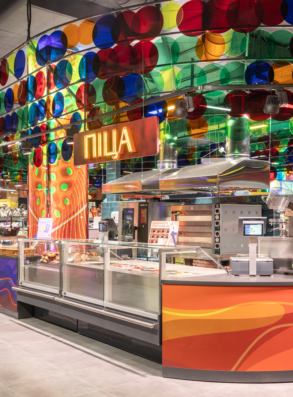 В новом Сільпо гостей всегда будут ждать специальные атмосферные зоны: хрустящая выпечка от Крафтяра и горячая пицца, рыба горячего копчения и ароматные блюда из кулинарии, отборные фермерские товары из Лавки Традиций.
