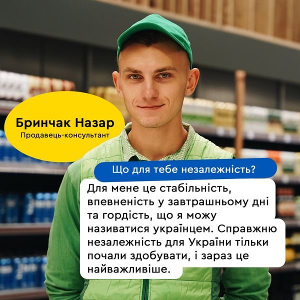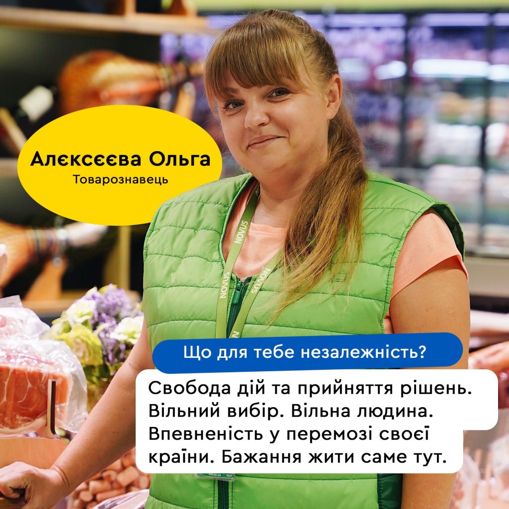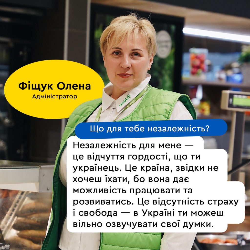 Литовская сеть Novus расспросила сотрудников своих магазинов, что для них независимость. “Ни одно оружие не возьмет страну, в которой знают, что такое независимость. С праздником, дорогие! Держим строй, бережем Украину и друг друга!” – задекларировал