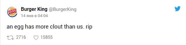 «У яйца больше влияния, чем у нас. RIP», – написали с сожалением на страничке Burger King.