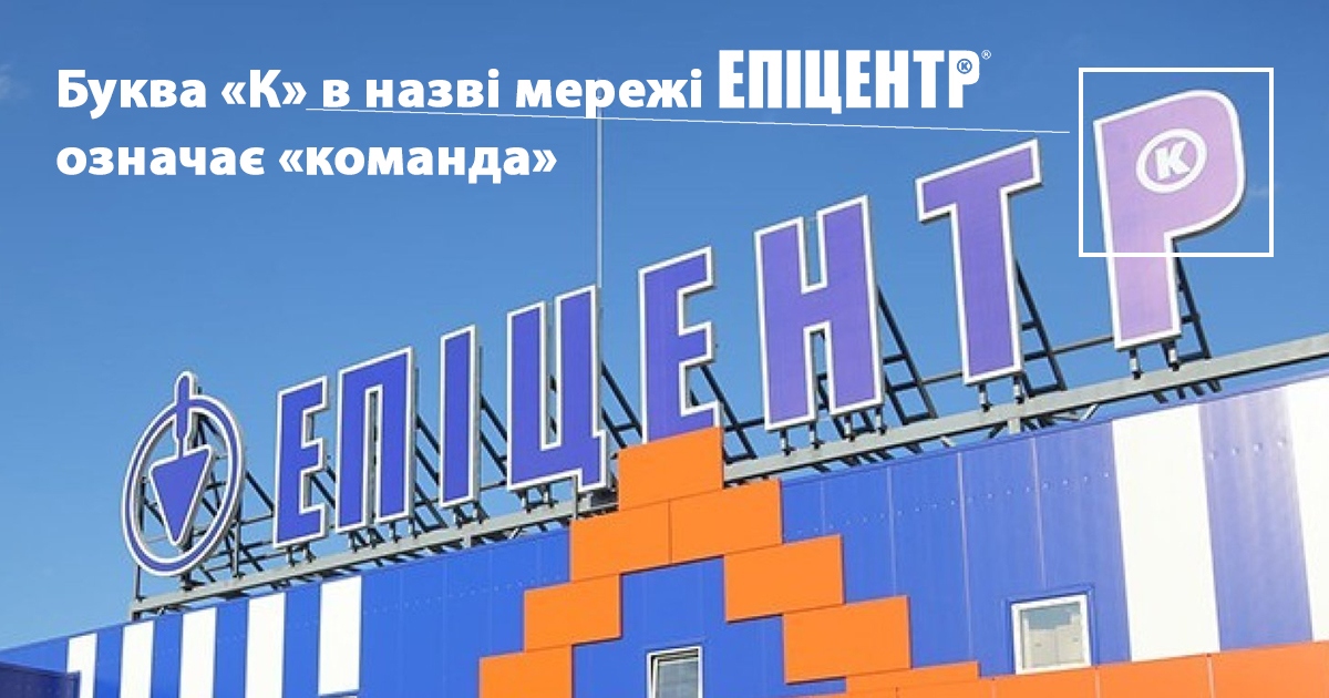В начале 2003 года, когда только строили первый строительный гипермаркет Эпицентр, владельцы компании Александр и Галина Герега дали задание маркетологам придумать название сети. Те принесли 800 вариантов, среди которых были Строймарт, Стройбуд и прочее подобное. Тогда в компании устроили конкурс между сотрудниками и один из них предложил Эпицентр. По воспоминаниям Александра Гереги, это было то, что надо. Однако в слове не хватало одной буквы. “Должно было быть девять букв. У Галины Федоровны (Гереги, – прим.) 9 августа день рождения, у меня 27-го, а 2+7=9. Я добавил еще одну. Буква «К» означает «команда». Получилось «Эпицентр К», – рассказал в одном из интервью совладелец сети.