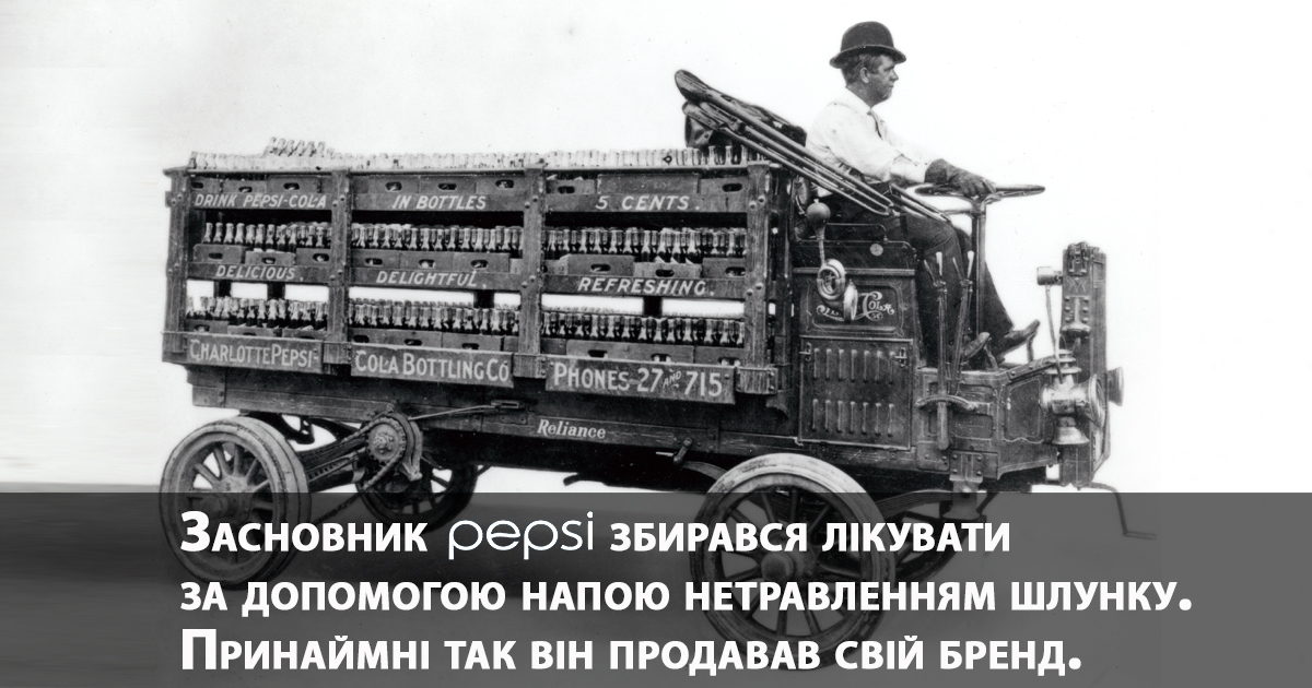 Первый напиток создателя Pepsi Калеба Дэвиса Брэдхема представлял собой смесь сахара, воды, карамели, лимонного сока и мускатного ореха, и назывался Brad’s Drink (“напиток Брэда”). На дворе был конец XIX века и Брэдхэм верил, что его напиток помогает справляться с несварением желудка или, по-научному, диспепсией. Когда дело дошло до более выгодного названия, Калеб скомбинировал науку и суеверие. Он взял слово “dyspepsia”, что означает “расстройство пищеварения”, убрал приставку “dys” и лишнюю букву “a” в конце. Лечебных качеств от того напиток не приобрел хотя бы потому, что в нем слишком много сахара, однако Pepsi уже более века успешно продается по всему миру.