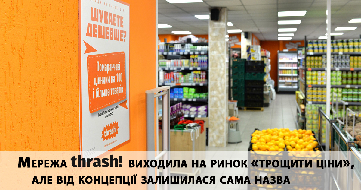У другой продуктовой сети Fozzy Group – “Thrash! Траш” – интересно даже не происхождение названия, а его трансформация. Сперва компания открывала магазины под вывеской Thrash!, чем старалась подчеркнуть концепцию жесткого дискаунтера, согласно которой в сети “трощат цены”. Однако часть посетителей читала название как “трэш” (“trash” – мусор в переводе с английского), о чем шутили в социальных сетях. Компания была вынуждена добавить на вывески правильное звучание слова, таким образом сеть начала называться ” Thrash! Траш”. Интересно, что в прошлом году магазины отошли от формата жесткого дискаунтера, поэтому в итоге от идеи осталась только двойное название.