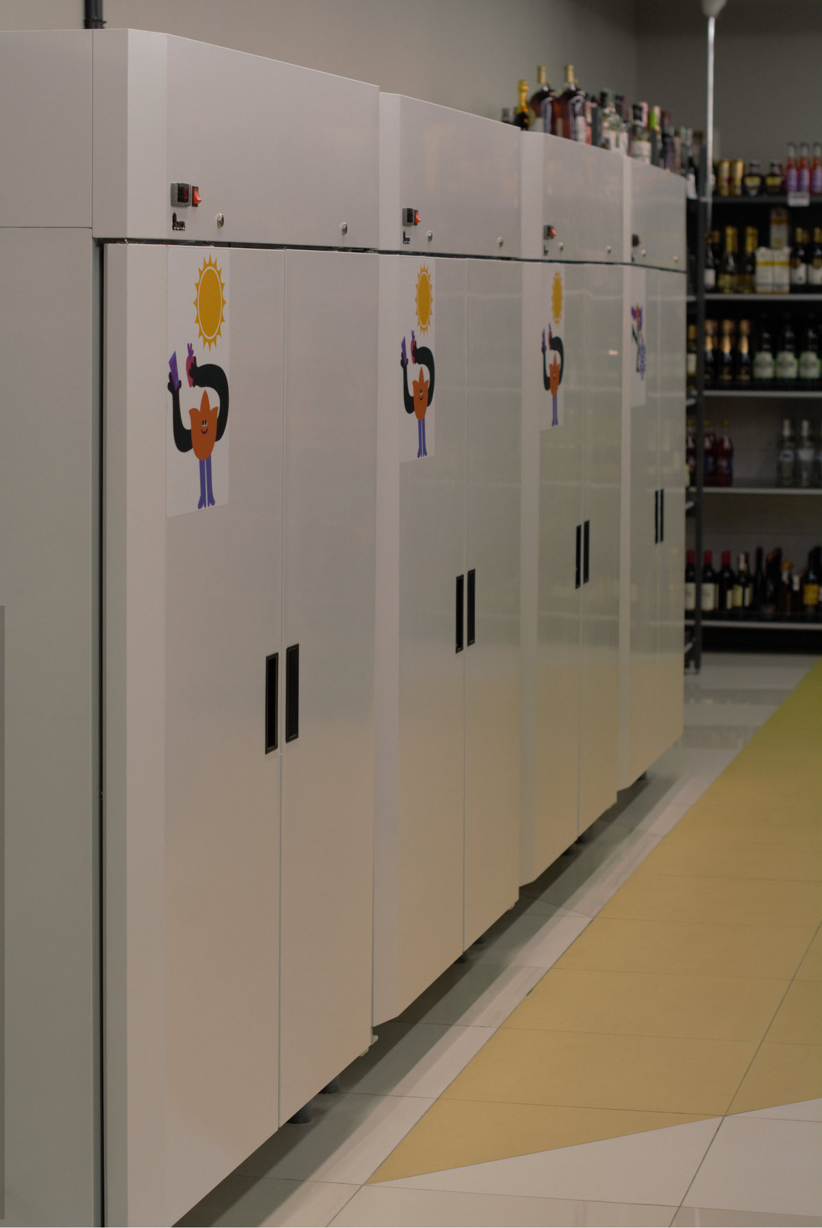 Когда поступает разноплановый заказ, куда входят, например, замороженные продукты, бытовая химия, овощи и фрукты, молочка и так далее, каждый вид товаров упаковывается отдельно, и до прибытия курьера хранится в соответствующем месте. Например, замороженные и молочные продукты – в специальных холодильниках и морозильниках, другие – на полках. Заказ ждет курьера с уже наклеенным стикером, который поможет идентифицировать адрес при выдаче заказа клиенту.