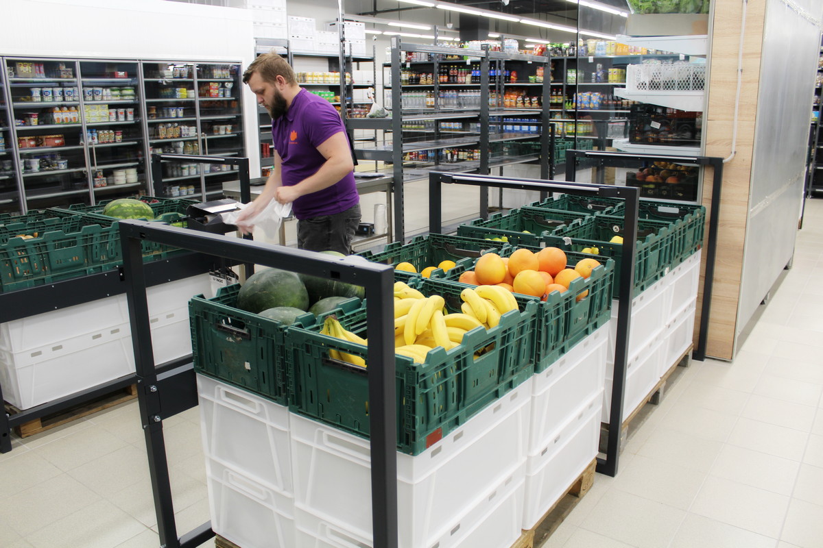 Но это не единственные преимущества darkstore по сравнению с интернет-заказом, который собирается в физическом магазине. «Здесь мы максимально автоматизировали систему управления складом, – делится Денис Кириченко. – Благодаря ей мы можем детально отслеживать движение товаров и знать, на каком этапе они находятся: заказанные из распределительного центра, в пути к нам, разгружаются, маркируются или уже доставлены на полку. Только когда какой-нибудь продукт уже размещен на полке, он становится доступным для заказа через сайт».