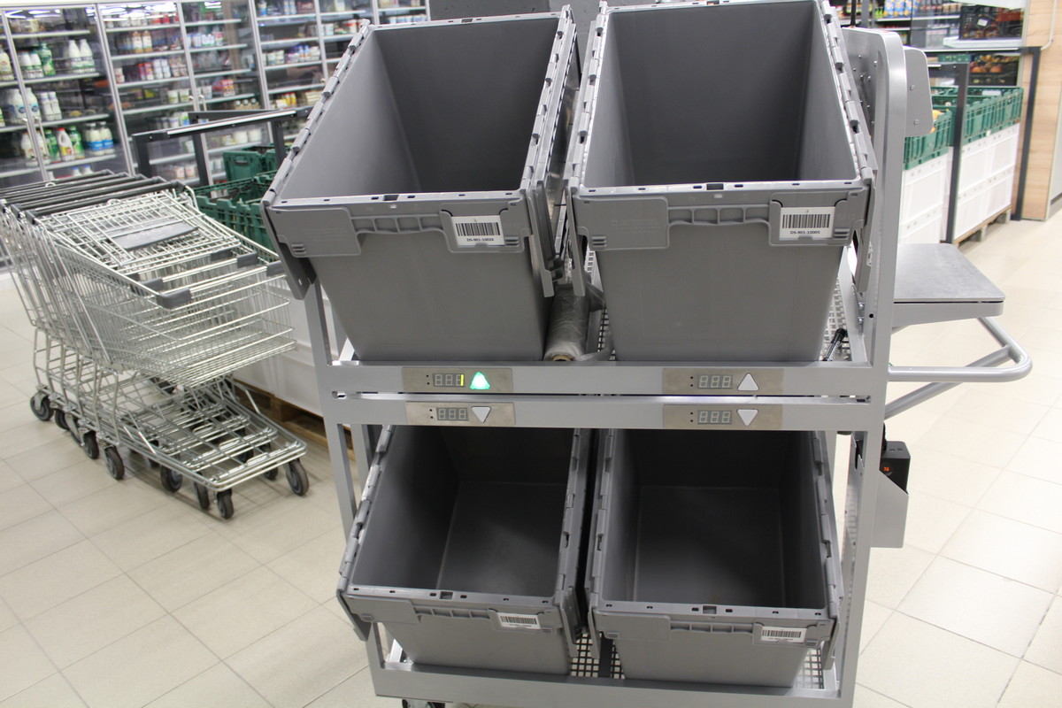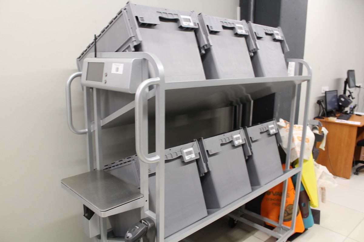 Всего на объекте есть 5 тележек, то есть в пиковом режиме возможно одновременное формирование 20 корзин.