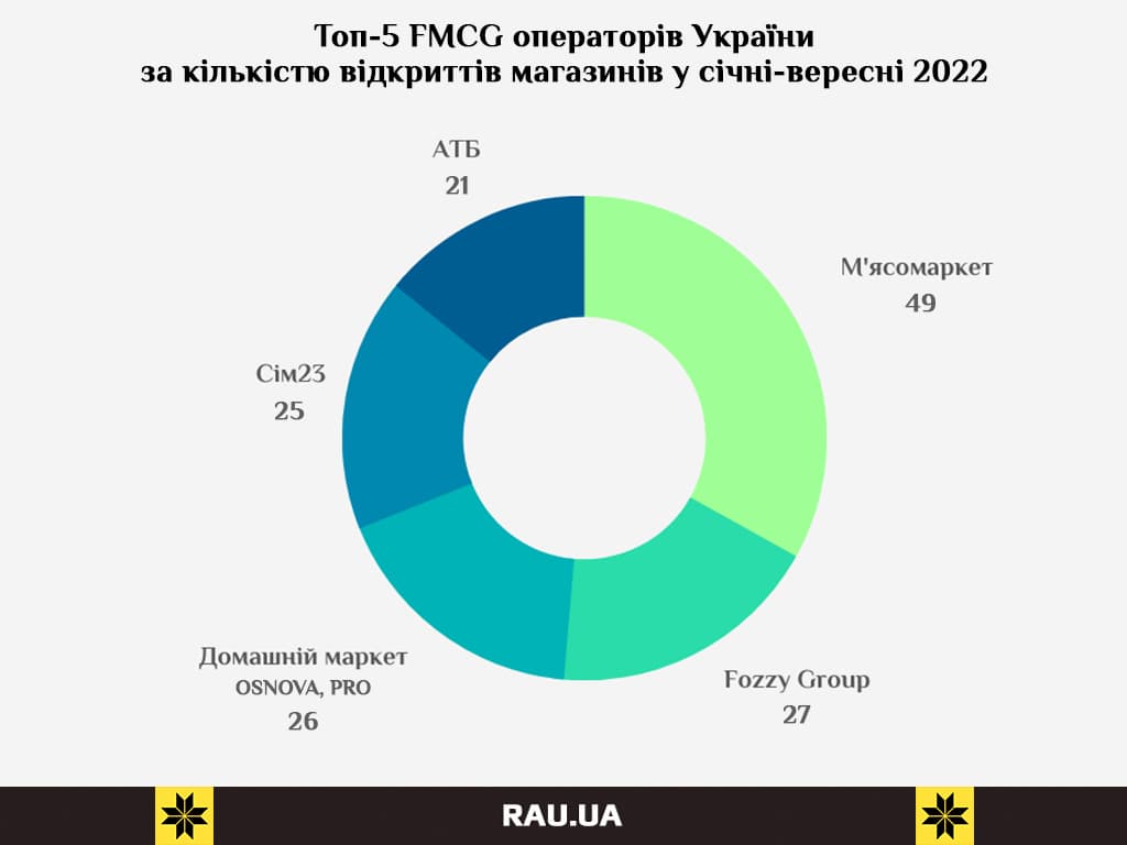 Кто из FMCG-операторов украинского ритейла, несмотря на войну, открывал больше всего магазинов и как изменились позиции в первой десятке игроков за три квартала 2022 года.