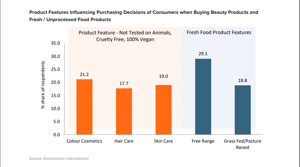 Современный потребитель гибок и совершает сознательный выбор. Лояльность, которая ранее адресовалась лишь конкретным нишевым производителям, теперь распространяется и на обычные компании, предлагающие достойные альтернативы существующим продуктам. Сознательные потребители влияют на выбор других. Сюда относится обеспокоенность условиями содержания животных, и это касается не только продуктов питания, но и сферы красоты и моды, товаров для дома, предметов интерьера, корма для домашних животных и так далее. Смысл ответственного бизнеса меняется, компании повышают стандарты условий содержания животных даже при разработке обычных продуктов.