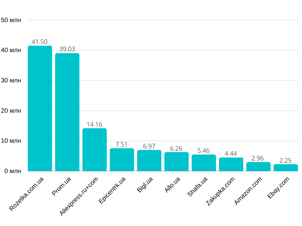Редакция EVO.business проанализировала данные сервиса SimilarWeb и подготовила список самых посещаемых маркетплейсов в Украине в июле 2020 года. Согласно рейтингу издания, кроме лидирующего онлайн-ритейлера Rozetka, которому буквально наступает на пятки Prom.ua, в топ-5 наиболее посещаемых интернет-площадок также вошли Aliexpress.ru+com, Epicentrk.ua, Bigl.ua.
