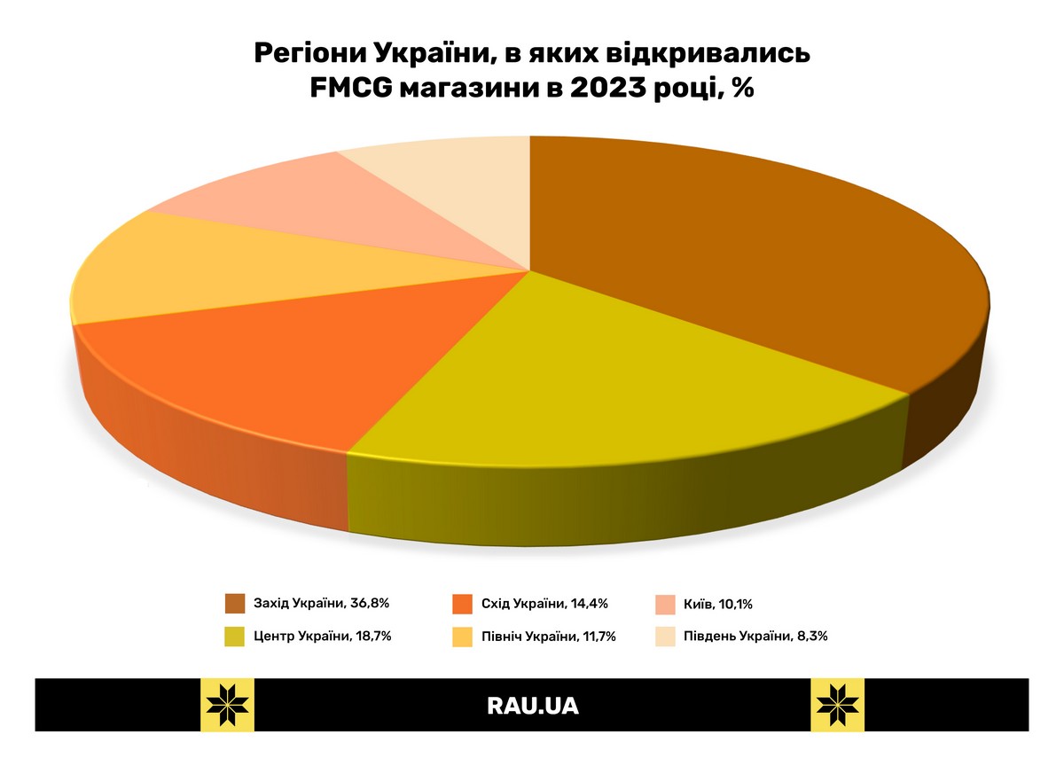 Если проанализировать географическое распределение новых локаций FMCG-ритейлеров, то сразу видна ориентация по вектору: чем дальше от фронта, тем больше новых магазинов. Так, по данным аналитиков GT Partners Ukraine, основная масса новых магазинов была открыта на западе Украины – около 36,8%. Что обусловлено как фактором относительной безопасности этих регионов, так и резким увеличением количества потребителей за счет эвакуированных. Однако во втором полугодии 2023 года проявился тренд по увеличению доли открытий на востоке и севере страны. Так, количество новых магазинов в восточных областях увеличилось до 14,4% в декабре по сравнению с 10,9% в марте 2023 года. Аналогично доля северного региона увеличилась до 11,7% по сравнению с 10,2% в первом полугодии 2023 года.
