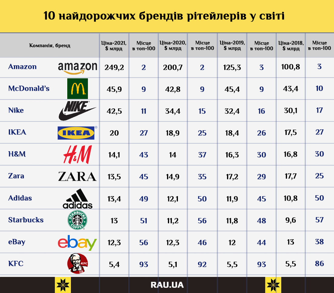 Топ-10 самых дорогих ритейл-брендов мира: версия Interbrand