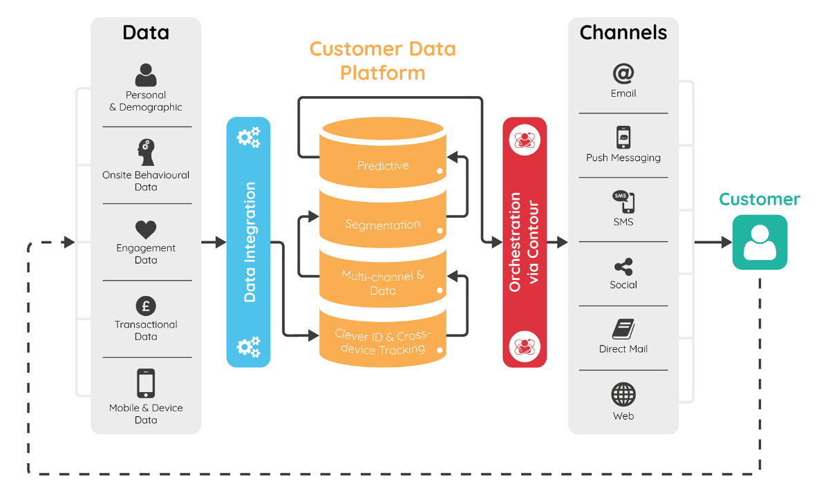 - Платформы CDP (Customer Data Platform) объединяют данные о пользователе из разных источников: онлайн-каналы, офлайн точки продаж, файлы из каких-либо баз данных. Некоторые системы анализируют, в какое время нужно прокоммуницировать с пользователями, чтобы они не перешли в churn – перестали быть клиентами компании.