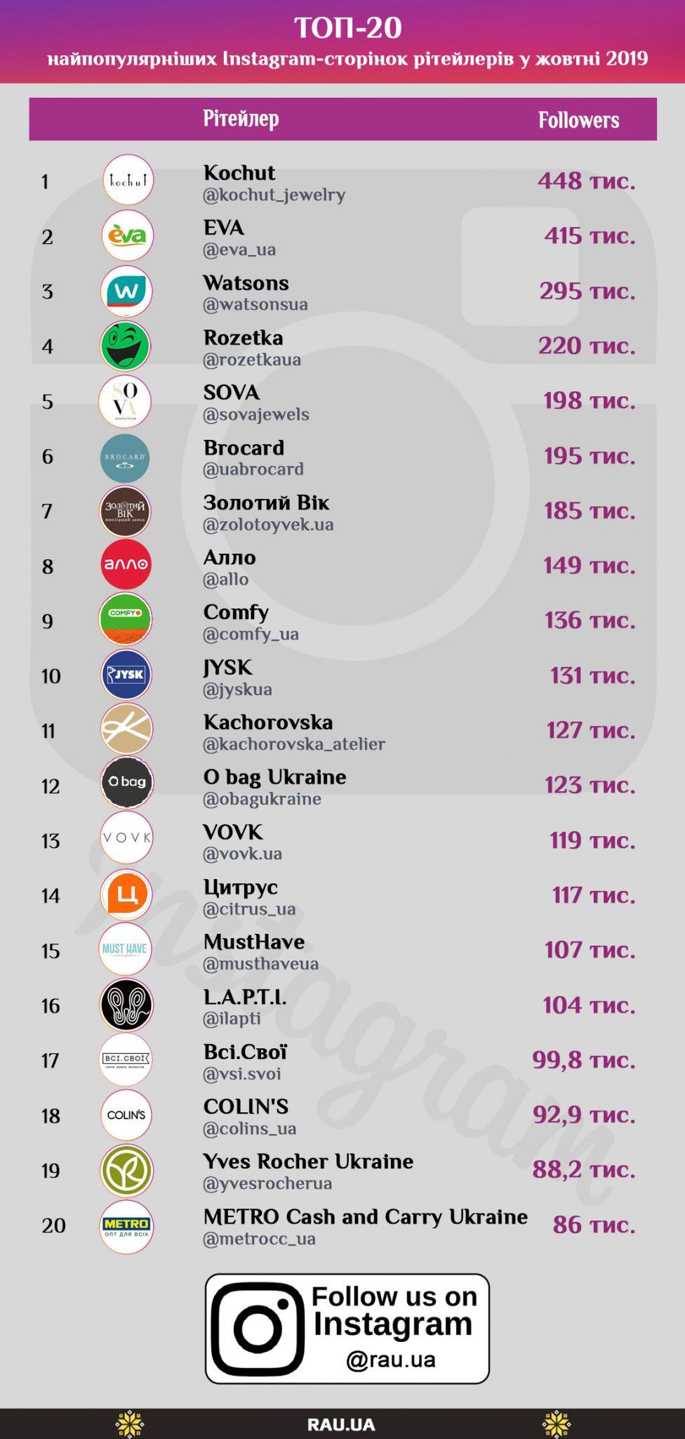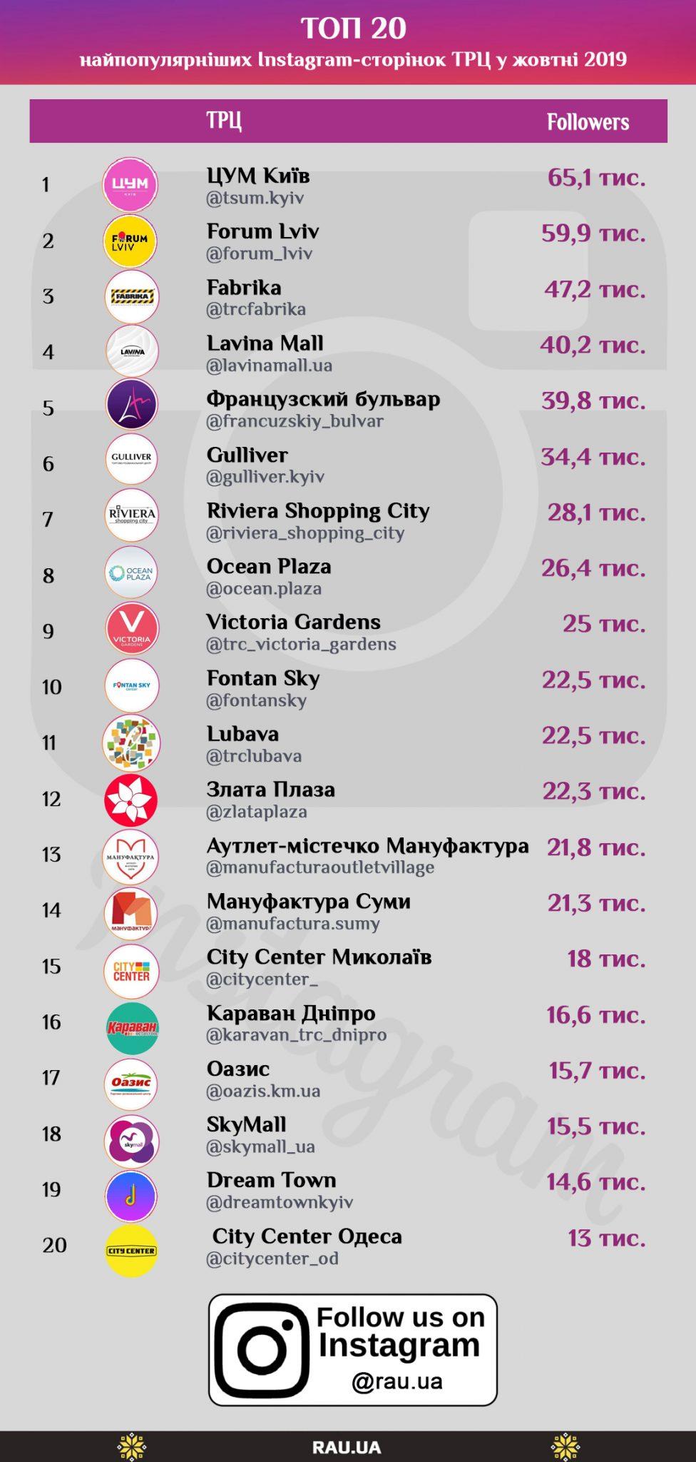 Инстаграмный листопад: топ-20 Instagram-страниц украинских ритейлеров и ТРЦ в октябре