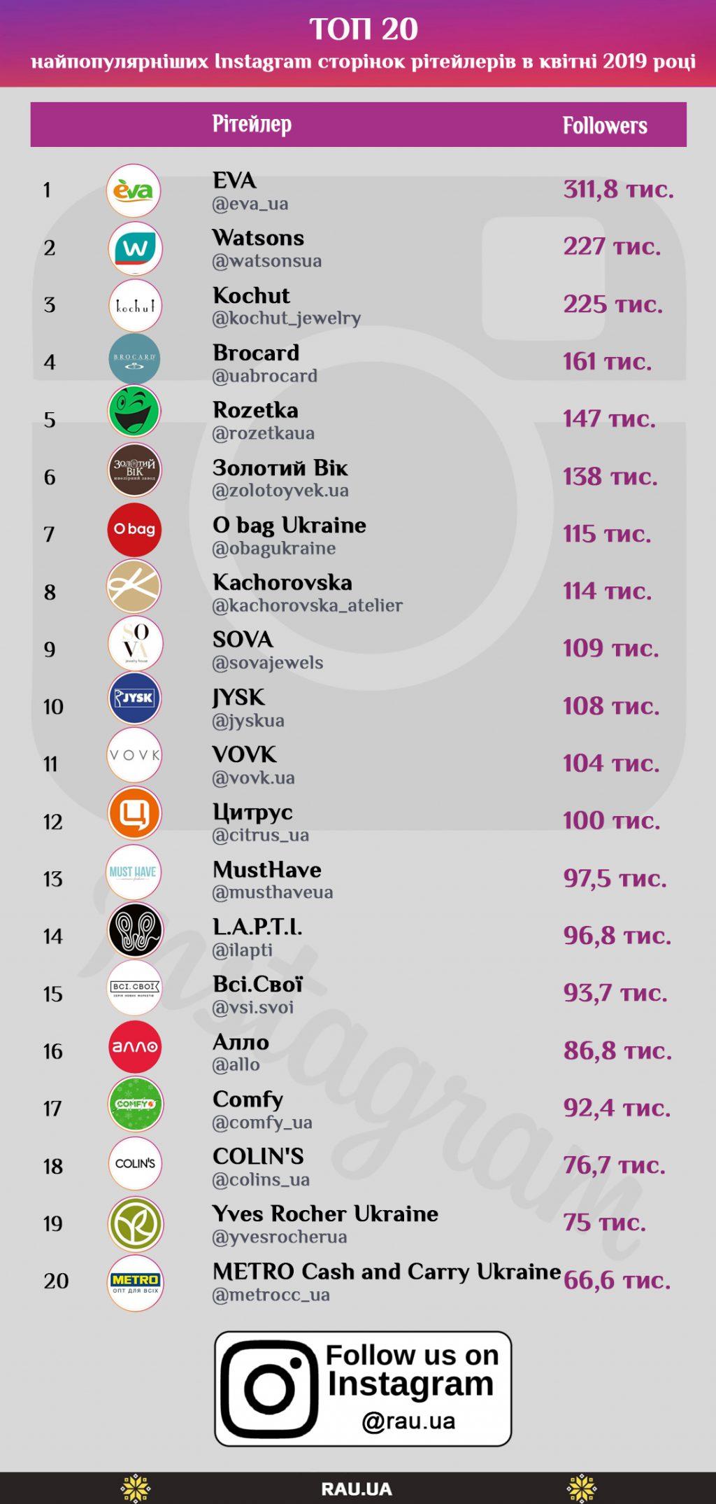Рейтинг апреля: топ-20 Instagram-страниц украинских ритейлеров и ТРЦ