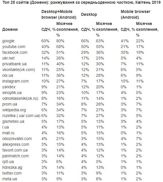 Компания Factum Group по заказу Интернет ассоциации Украины (ИнАУ) провела исследование популярности сайтов среди украинских интернет-пользователей в апреле 2019 года. В топ-25 попали и крупные компании сферы e-commerce.