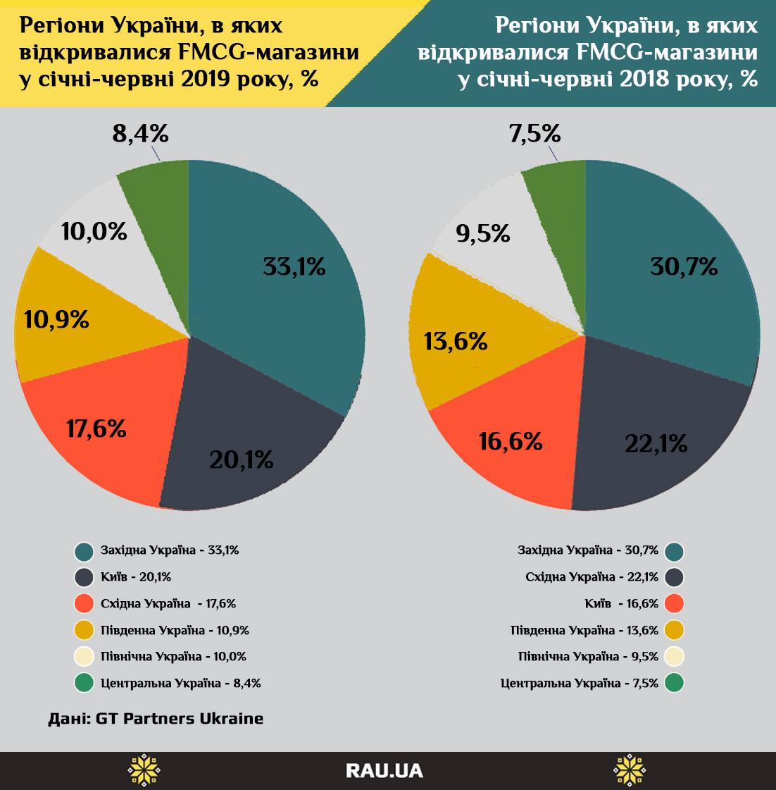 Кто из операторов украинской сетевой розницы сегмента FMCG открывал больше всего магазинов, какие регионы стали приоритетными для ритейлеров и как изменились позиции в топ-5 игроков за первые полгода 2019-го.