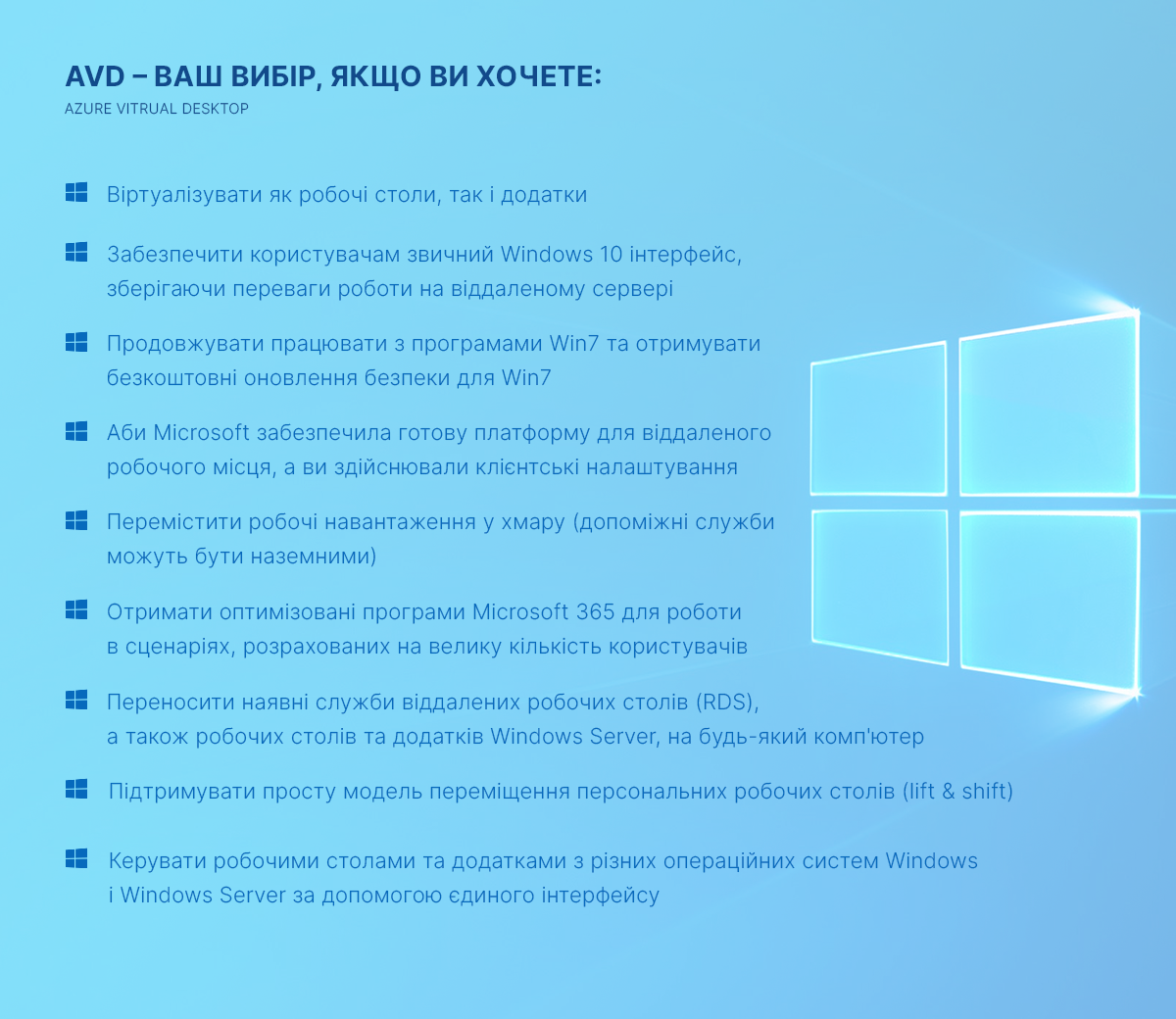 Преимуществом Azure Virtual Desktop перед аналогичными решениями является и простота развертывания – оно доступно “из коробки” и требует минимальных настроек.