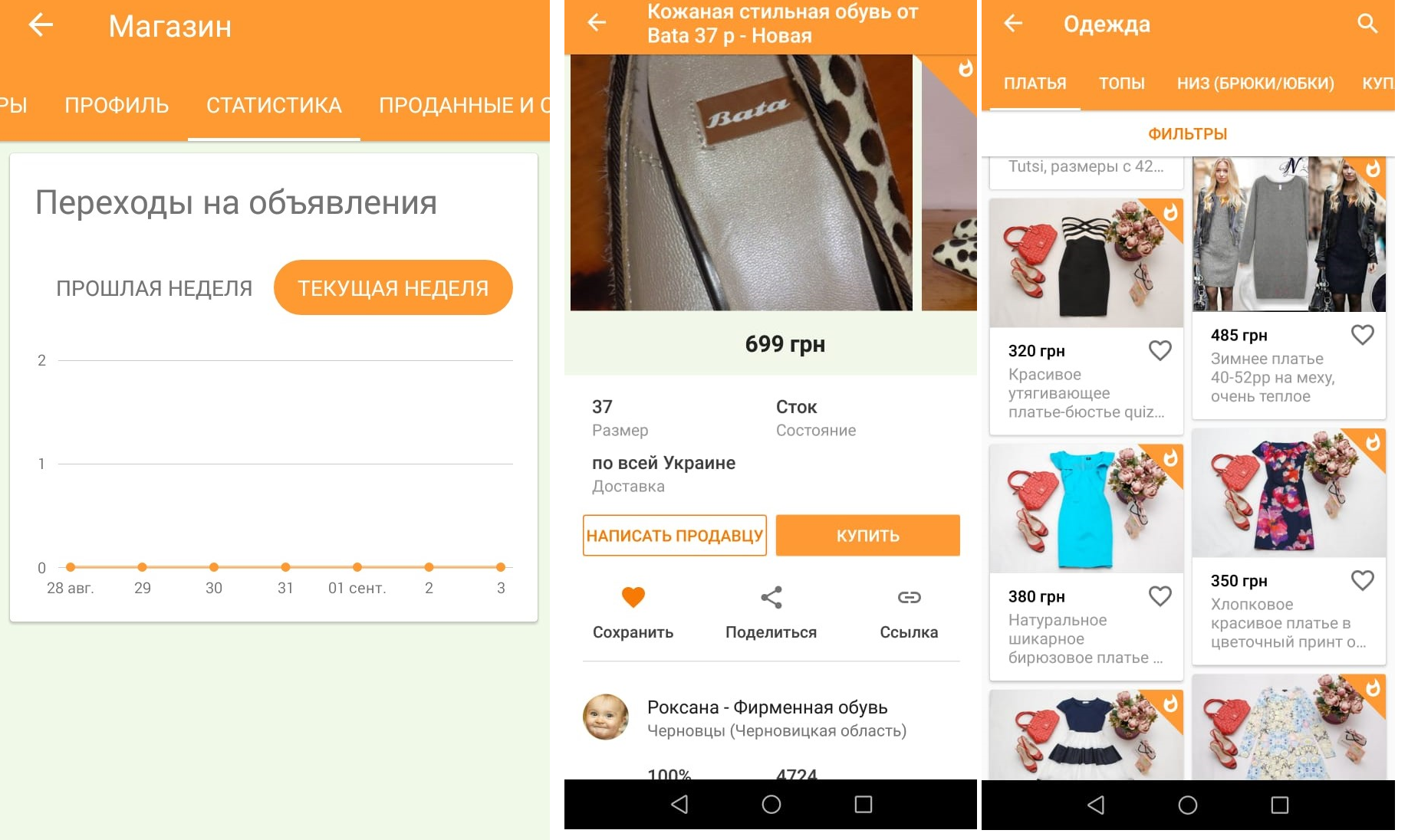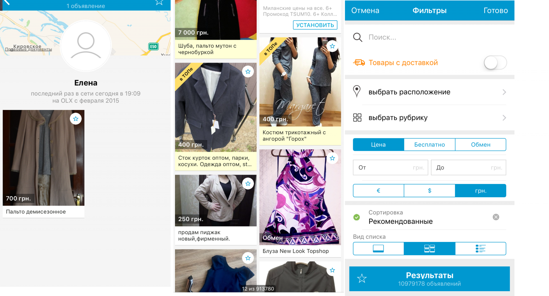 - не имеет специализации, поэтому за одеждой, например, удобнее идти на другую площадку, ведь иногда странно видеть в профиле продавца одновременно чайник, радиатор и платье. О продавце, уровне сервиса и качестве обслуживания можно только догадываться – в приложении не предусмотрена система отзывов и рейтинг продавцов,