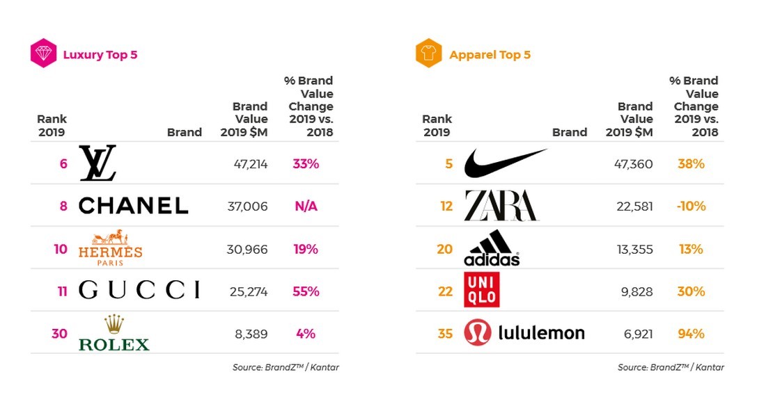 За последние пять лет топ-10 самых дорогих люксовых брендов улучшили восприятие их социальной и экологической ответственности, одновременно усилив свой опыт работы в интернете. Новые бизнес-модели для перепродажи или аренды предметов роскоши усиливают конкуренцию в секторе традиционных брендов класса люкс.