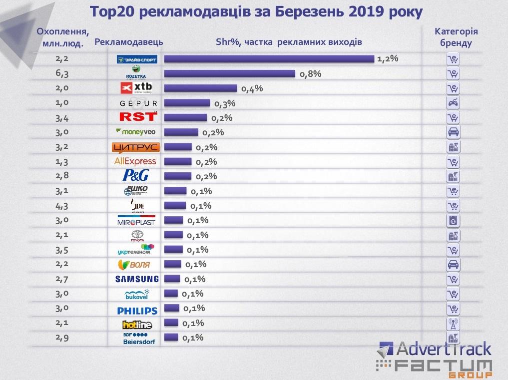 Топ рекламодателей марта в интернете: в лидерах Драйв Спорт и Rozetka