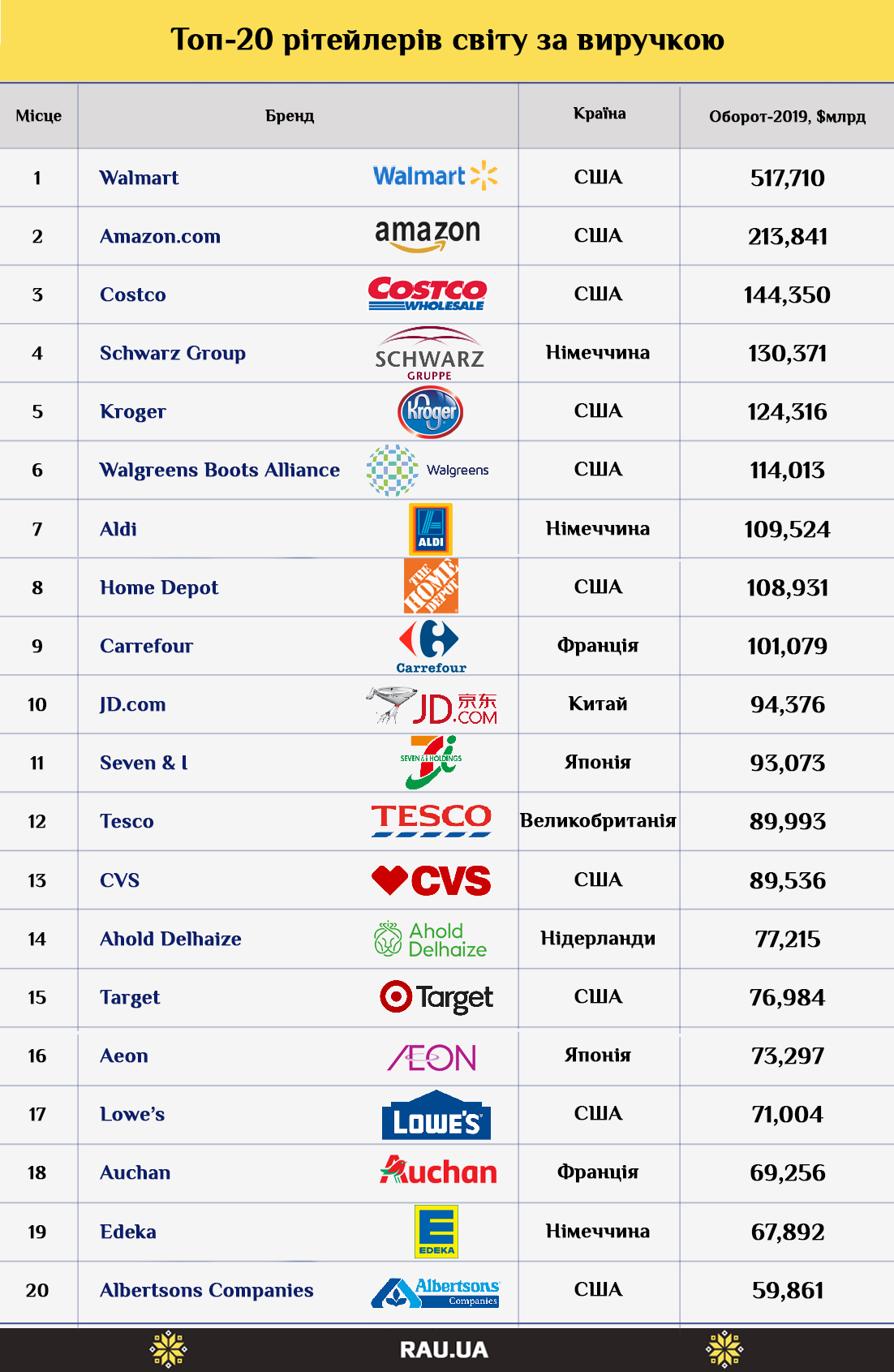Лучшие в мире: топ торговых сетей мира по обороту, количеству магазинов и перспективам
