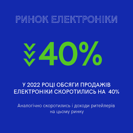 В 2022 году украинский ритейл электроники претерпел существенное сокращение объемов продаж и, соответственно, доходов. По оценкам экспертов, сокращение составило 40%. Одной из причин стало физическое закрытие части магазинов из-за угрозы боевых действий.
